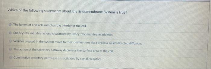 Which one of the following statements about the endomembrane system is correct. Membrane system taken into consideration to be expansion of infolded plasma membrane is. Which one of the following statements about the endomembrane system is correct. The endomembrane system includes the rough and smooth endoplasmic reticulum.